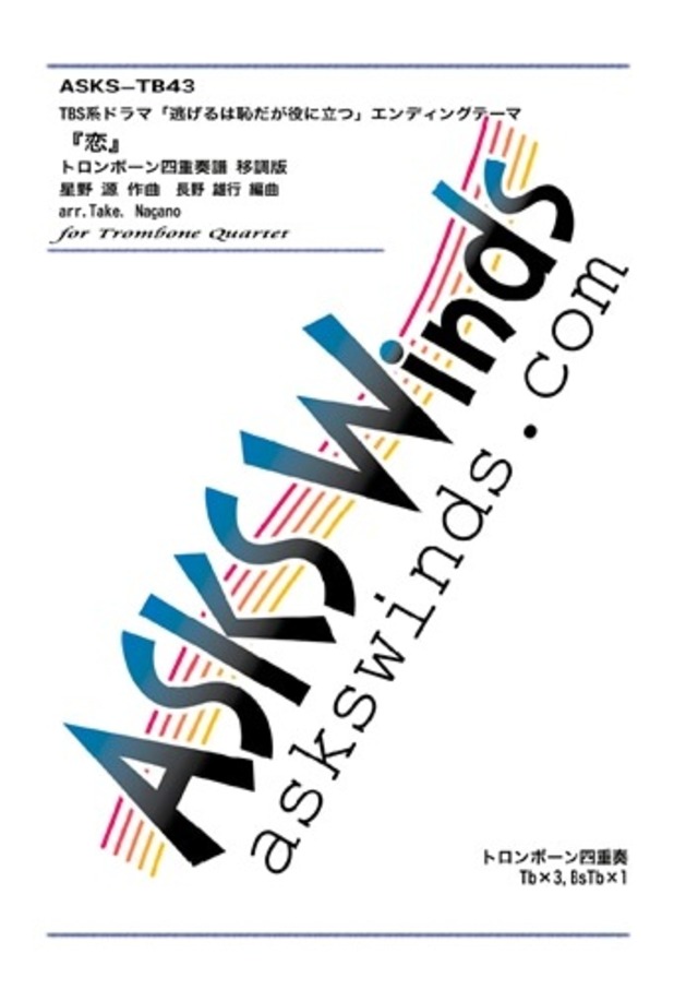 トロンボーン四重奏譜 逃げるは恥だが役に立つ」ED『恋』(移調版)作曲 長野 雄行編曲