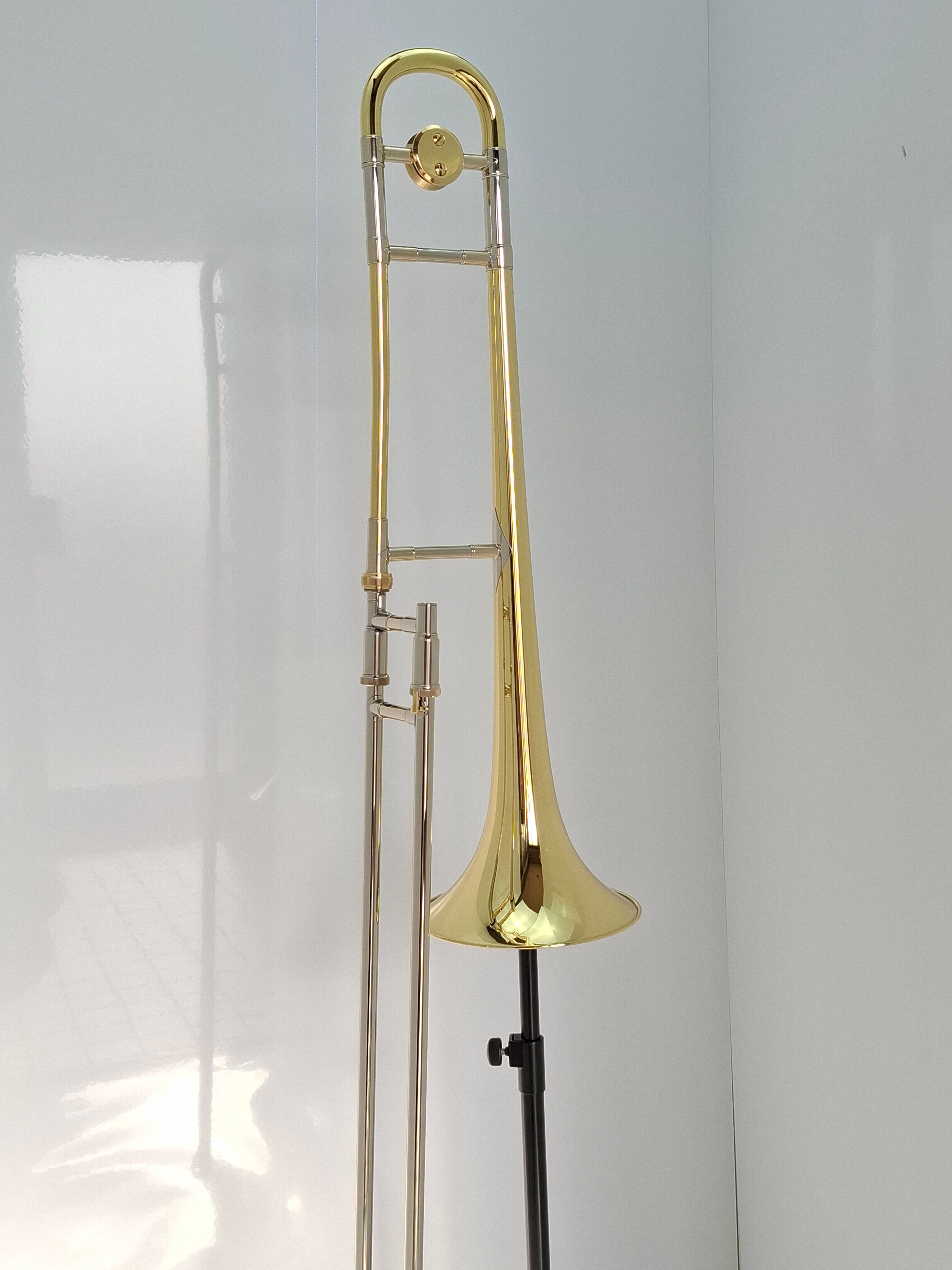 現行のバック「ストラッド」トロンボーンの中で一番細い12.70mmのボアを持つ細管テナートロンボーン。7-1/2インチの小型のベルと相まって、非常にスピード感のある艶やかな音を出すことができますが、ベルが緩やかに広がる形状をしているので、バックトロンボーン特有の気品ある音色は失われていません。